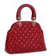 Take this adorable bag with you on a leisurely outing. Sleek red patent leather. Stitched RR RIONI in a quilted design. Punctuated with gold hardware. Coffee brown fabric RIONI monogram print lining. Top zip closure opens to an interior featuring a zippered center divider pouch. A side pouch and a cell phone pocket allows for easy organization. Interior side zippered pocket.