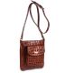 Perfect for the light tourist traveler. Gentle carmel leather embossed body accented with leather trimmings and adjustable straps. Front pocket with magnetic closure and leather RIONI imprint. Back sleeve pocket for additional room. Top zip closure opens to side zipper pocket and a cell phone holder pouch. Interior brown fabric RIONI monogram print lining with leather tassel key holder.