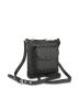 Perfect for the light tourist traveler. Gentle grey ''RR'' RIONI monogram print on solid black designer canvas body accented with leather trimmings and adjustable straps. Front pocket with magnetic closure and leather RIONI imprint. Back sleeve pocket for additional room. Top zip closure opens to side zipper pocket and a cell phone holder pouch. Interior black fabric RIONI monogram print lining with leather tassel key holder.