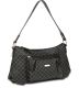 Redefine your style this season with the Rue bag. Gentle grey RR RIONI monogram print on solid black designer canvas body with leather trim and gold hardware. Front and rear zippered pocket for easy access to your essentials. Black fabric RIONI monogram print lining. Top zip closure opens to zippered center divider pouch. Interior features a side pocket, a cell phone pouch, and a zippered pocket on the side.