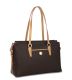 Throw all your goodies inside. A gentle dark gold ''RR'' RIONI monogram print on solid brown designer canvas body accented with dual-strapped leather handles and trim. Embossed gold RIONI Moda Italia emblem. Front pouch pocket. Rear zipper pocket. Zipper opening entrance. Coffee brown fabric RIONI monogram print lining. Interior cell phone pouch, pocket pouch and a zipper pocket. Also included is a detachable zipper pouch wallet.