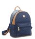 Through leisure and traveling adventures, this is a commuter's best friend. Gentle dark gold "RR" RIONI monogram print on navy blue designer canvas body accented with leather trim and gold hardware. This backpack features two adjustable straps, a front zippered pocket, and dual exterior side pockets. Zip closure opens to a spacious interior featuring a navy blue fabric RIONI monogram print lining. Interior contains a zippered pocket and two pocket pouches.