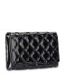 Bring out the glamorous rocker side of your personality with this clutch accentuated by chained detailing. Stitched RR RIONI in a quilted design. Punctuated with gold hardware. Black RIONI monogram print lining. Features a shiny black patent leather body, gold hardware, and a button snap closure. Rear pocket. Organization should come simple as the interior features four compartments, with the top flap zippered pocket to the second bottom compartment being a built-in zippered wallet. Holds up to 8 cards in their respective slots.