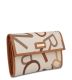 Fashion can be fun too! Look professional and creative with this Rioni Medley wallet that is fun and fabulous. No trouble getting anything out of this wallet with the easy to access compartments. The classic design provides for a no fuss no muss organization of money. Ivory designer canvas body with multi-shade of brown scrambled letters of the beloved word Rioni matched with a dark caramel leather. A button closure opens a coin purse with an identification card display along with five additional slots for credit cards. The back of the card slots in this wallet also has room for additional storage. A divided cash slot featuring our premium Rioni satin lining allows for separation of large, small, and even foreign currency!