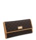 For the busy body on the go. Gentle dark gold ''RR'' RIONI monogram print against a solid designer canvas body. Embossed with gold RIONI Moda Italia emblem. Its button closure opens to a leather interior. Comes with a matching check book cover that is leather trimmed with the insignia ''R'' imprinted and an interior fabric lining. The wallet itself holds twelve credit cards and three sleeves for cash. The back of the wallet contains a zipper pocket for coins.