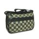 Checkers Collection - Medium Messenger Bag - grey, navy blue fabric body w/ black leather trim