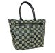Checkers Collection - Tote - grey, navy blue fabric body w/ black leather trim