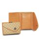 Beige Collection - Medium Wallet w/ Clasp - beige vinyl body w/ tan leather trim