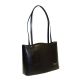 Red-Black Collection - Black Curve Top Tote - black vinyl body w/ black leather trim. PLEASE NOTE THAT THIS IS A FINAL SALE ITEM.