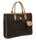 Class is in session. Gentle dark gold ''RR'' RIONI monogram print on solid brown designer canvas body accented with dual-looped leather handles and trim. Rear zipper pocket. Front zipper pouch pocket and flap pouch. Gold metal zipper opening entrance. Gold metal zipper expansion. Coffee brown fabric RIONI monogram print lining. Interior cell phone pouch, pocket pouch, two zipper pockets, leather pen holder, and leather card slots. Detachable shoulder strap included.