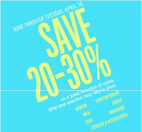 Fill your litte brown bag with goodies at a great price! Bloomingdales takes 20-30% on a great selection of merchandise in Womens, Contemporary, Mens, Kids, Shoes, Handbags, Jewelry, and Accessories. Offer valid April 6, 2012 through April 10, 2012. Prices as marked. Percentage reductions are off of original prices, except where noted. Also going on now: free returns on online orders placed April 2, 2012 through April 29, 2012. Valid only when shipping to the United States. Only available on Bloomingdales.com, free standard shipping on orders of $150 or more only at Bloomingdales.com and Bloomingdales.com/Registry, and free standard shipping on beauty orders of $50 or more at Bloomingdales.com
