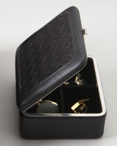 Well, the house I found for my matchy-patchy cufflinks was not an ideal mansion. It’s like a tiny collegiate apartment. It looks nice and the calf-skin is uber soft, but it would be nice if it was a condo. The only selling point is the soft calf-skin because four slots are not enough to qualify as organized. You can purchase this apartment at Neiman Marcus for $175. It’s made in Germany. Forget the last sentence because there’s no reason for why it needed to be mentioned.