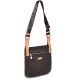 Set a trend with this messenger. Gentle dark gold ''RR'' RIONI monogram print on solid brown designer canvas body accented with leather trimmings and adjustable strap. Embossed with a gold RIONI Moda Italia emblem. Adjustable strap is supported on either side by a gold metal ring for reinforcement. Front zipper pocket and back sleeve pocket. Top zip closure opens to a coffee brown fabric RIONI monogram lining. Inside consists of a side zipper pocket, side pouch pocket, and a cell phone holder.