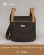 Set a trend with this messenger. Gentle dark gold ''RR'' RIONI monogram print on solid brown designer canvas body accented with leather trimmings and adjustable strap. Embossed with a gold RIONI Moda Italia emblem. Adjustable strap is supported on either side by a gold metal ring for reinforcement. Front zipper pocket and back sleeve pocket. Top zip closure opens to a coffee brown fabric RIONI monogram lining. Inside consists of a side zipper pocket, side pouch pocket, and a cell phone holder.