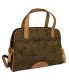Paris Collection - Carry-on Handbag w/ Shoulder Strap - dark beige fabric body w/ tan leather trim